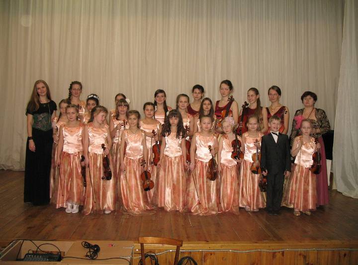 Однажды, узнав, что я руковожу ансамблем скрипачей, она предложила нам сыграть перед балом. Музыка на балу начинает звучать за час до открытия, во время прибытия гостей. Это очень ответственный момент, от него зависит, какое настроение будет у участников бала. Тогда я отказалась: не было специальной аппаратуры и для подготовки детей тоже нужно было время. Но идея была настолько хороша, что я стала ее обдумывать. Сколько было найдено разных вариантов решения! Искали и писали фонограммы, к ним делали нотные переложения для скрипок, покупали и ремонтировали музыкальные инструменты. Приобрели колонки, микшер, усилитель, радиомикрофоны, двд-плеер. Костюмы шили и покупали сами. И началась в скрипичном ансамбле совсем другая жизнь.